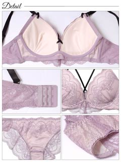 ダスティブルームエンブロイダリー育乳脇高ブラジャー&バック透けフルバックショーツ