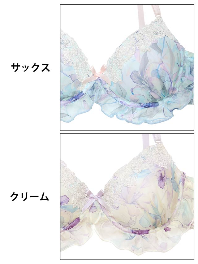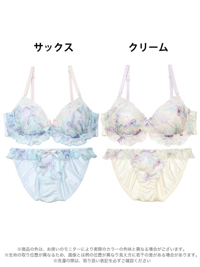 【EFサイズ】ケミカル水彩リリーフリルブラジャー&フルバックショーツ[大人気]