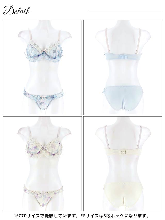 【EFサイズ】マルチフラワーエンブロイダリーブラジャー&フルバックショーツ