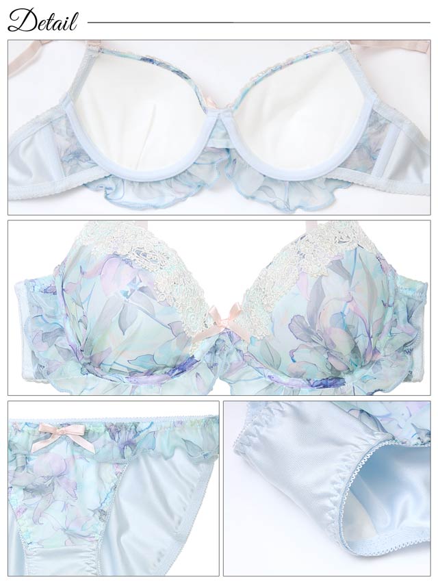 ダスティブルームエンブロイダリー育乳脇高ブラジャー&バック透けフルバックショーツ