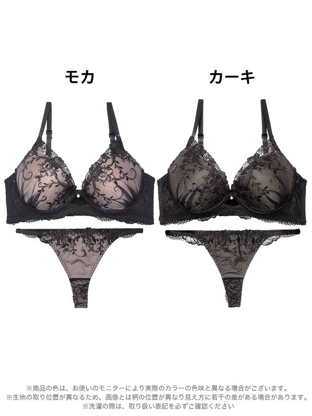 9/11再販!【三上悠亜着用】グリッターアイビーエンブロイダリー育乳脇高ブラジャー&バック透けTバックショーツ[激売れ][週替][スーパーセール]