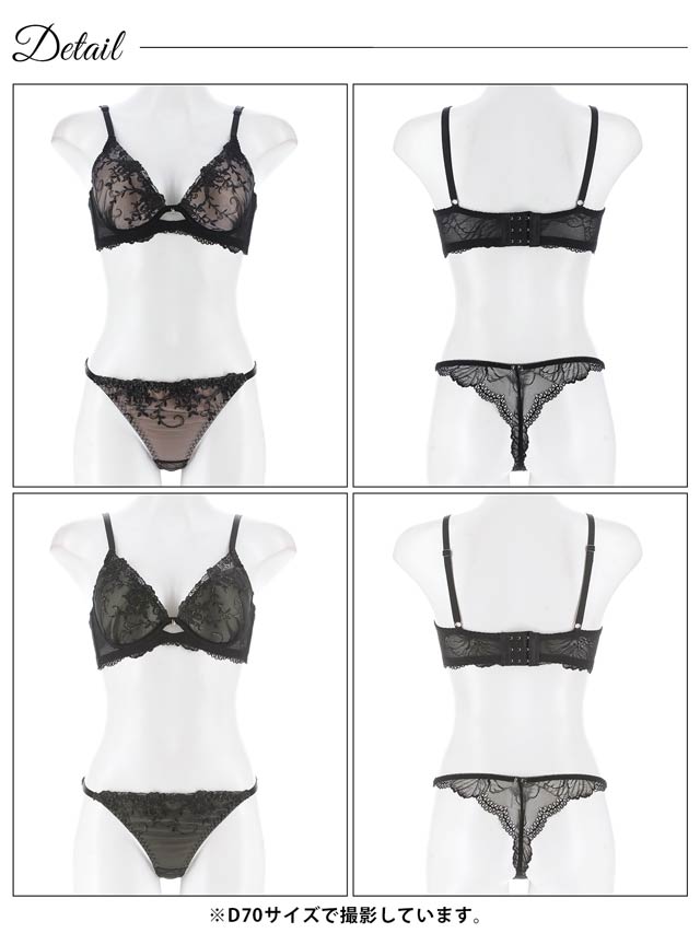 オールレースカットストリング育乳脇高ブラジャー&バック透けフルバックショーツ