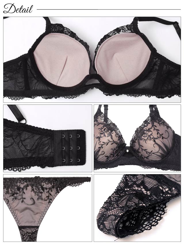 エレガンスフラワー刺繍ブラジャー&Tバックショーツ[1250DRW]