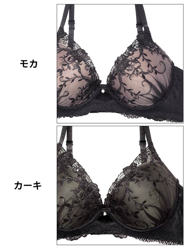 ダスティブルームエンブロイダリー育乳脇高ブラジャー&バック透けフルバックショーツ