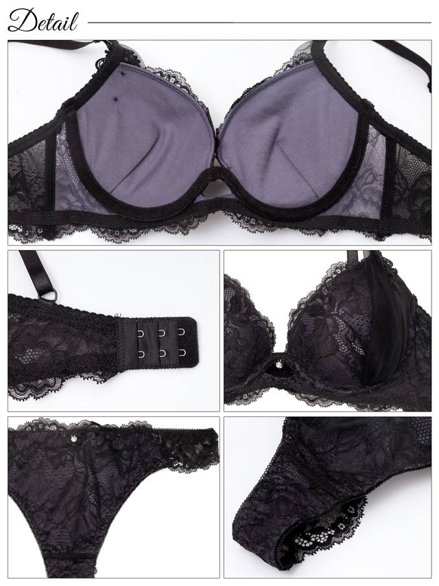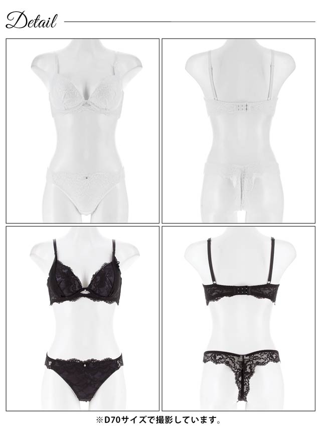 オールレースカットストリング育乳脇高ブラジャー&バック透けフルバックショーツ