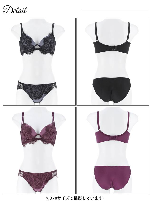 【三上悠亜着用】シャドウレースビジューホール育乳脇高ブラジャー&バック透けフルバックショーツ[激売れ]