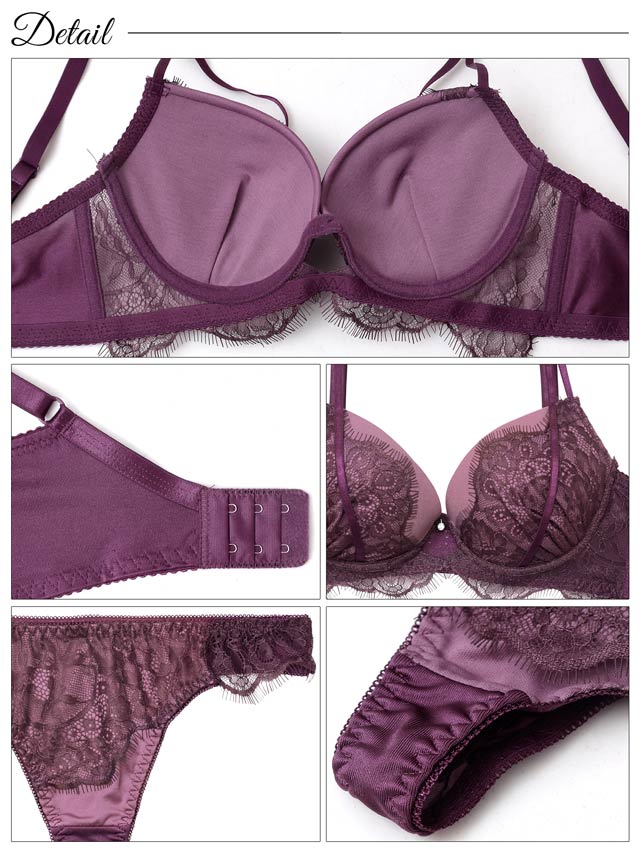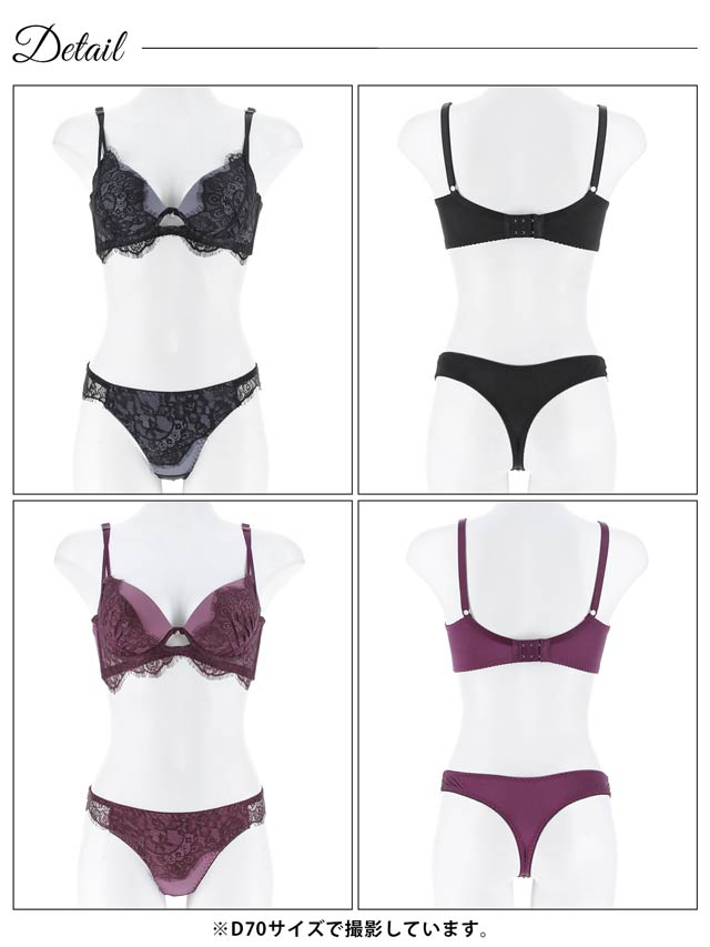 オールレースカットストリング育乳脇高ブラジャー&バック透けフルバックショーツ
