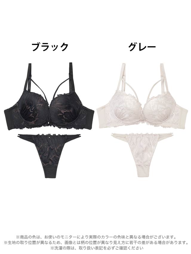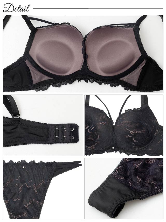 オールレースカットストリング育乳脇高ブラジャー&バック透けフルバックショーツ