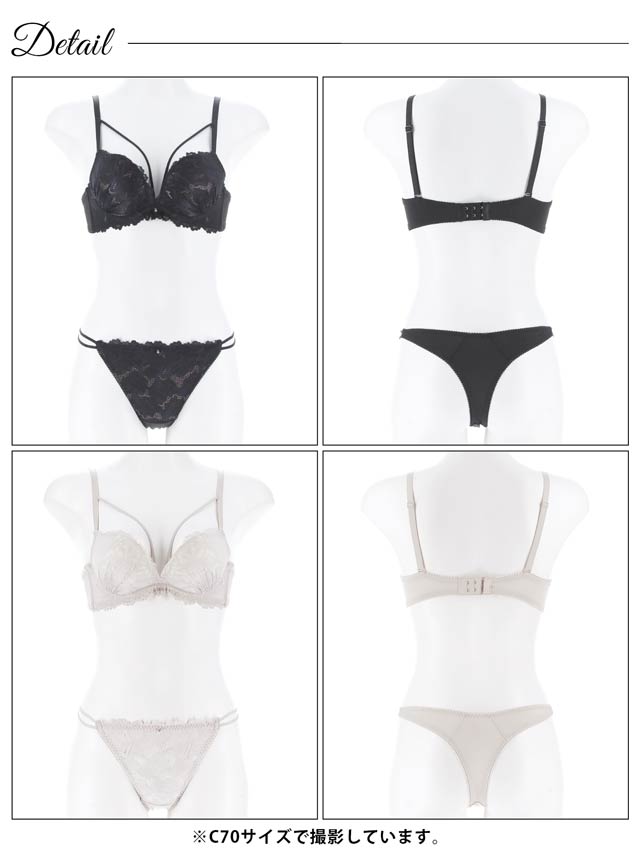 フロレゾンローズレース育乳脇高ブラジャー&サイド紐バック透けフルバックショーツ