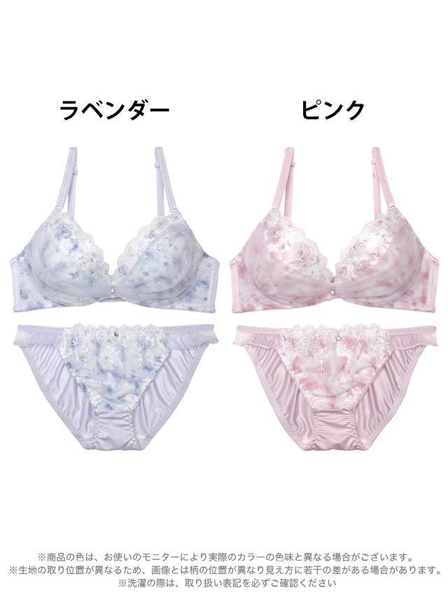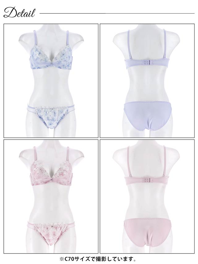 ダスティブルームエンブロイダリー育乳脇高ブラジャー&バック透けフルバックショーツ