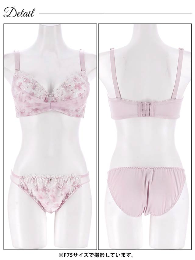 【Reinest】グラマーペタルエンブロイダリーブラジャー&バック透けTバックショーツ