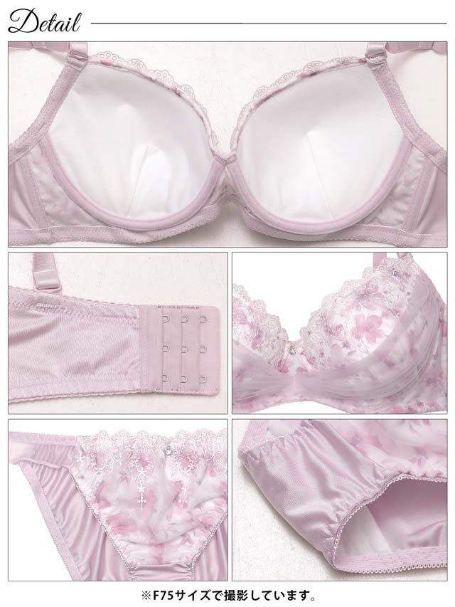 2/28再販!【EFサイズ】ブロッサムシフォンベールブラジャー&フルバックショーツ[大人気]