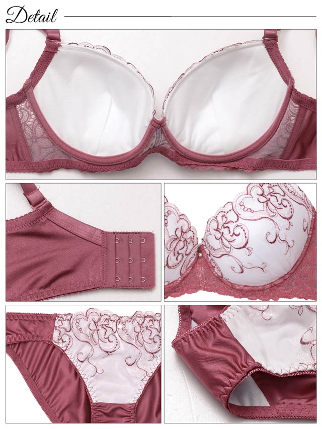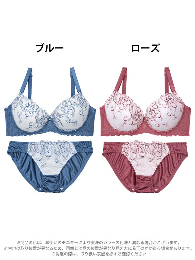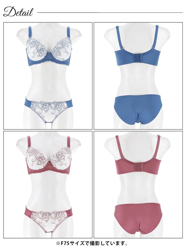 ダスティブルームエンブロイダリー育乳脇高ブラジャー&バック透けフルバックショーツ