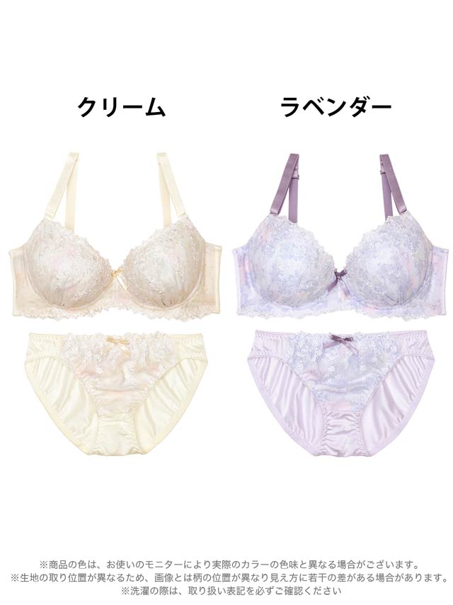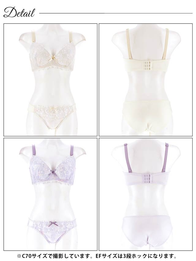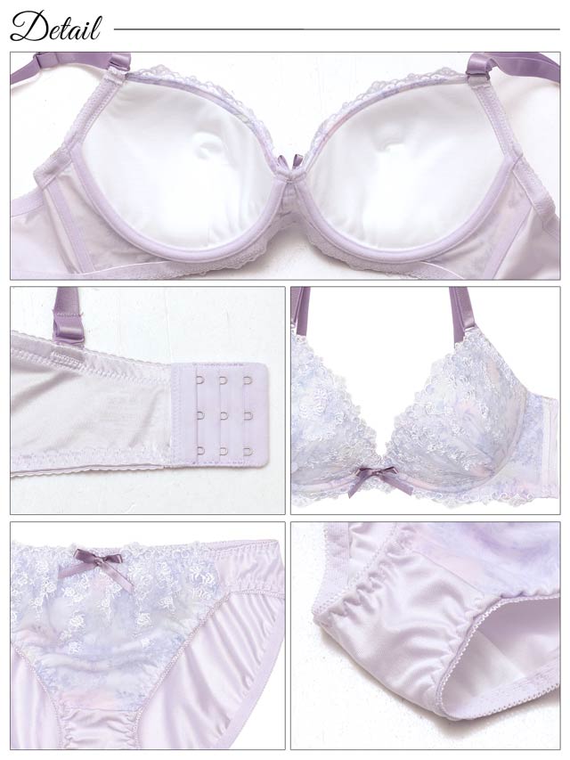 ダスティブルームエンブロイダリー育乳脇高ブラジャー&バック透けフルバックショーツ