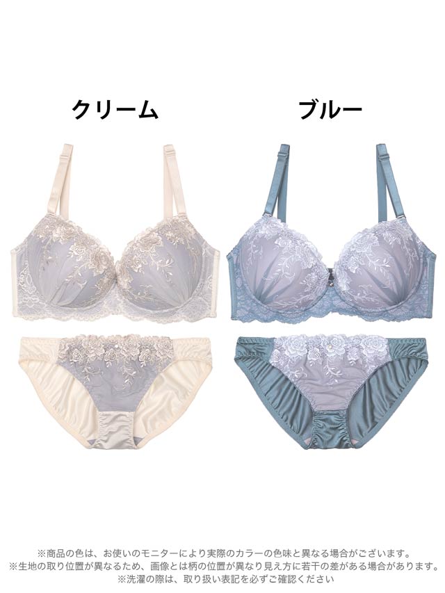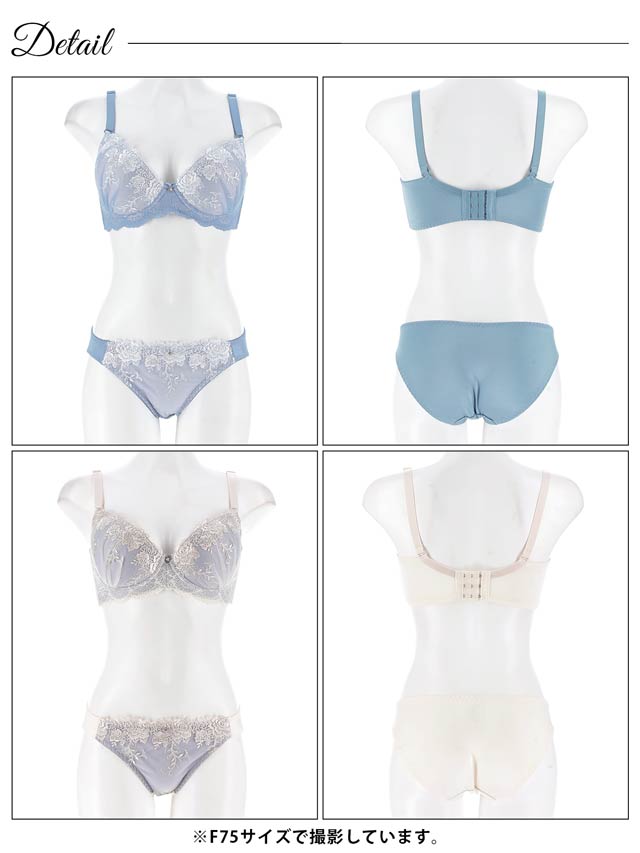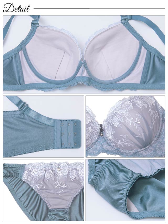 ダスティブルームエンブロイダリー育乳脇高ブラジャー&バック透けフルバックショーツ