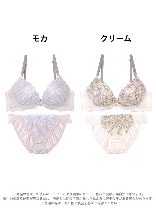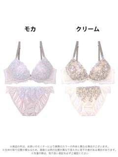 9/11再販!フェミニンリーフエンブロイダリーブラジャー&フルバックショーツ[激売れ]