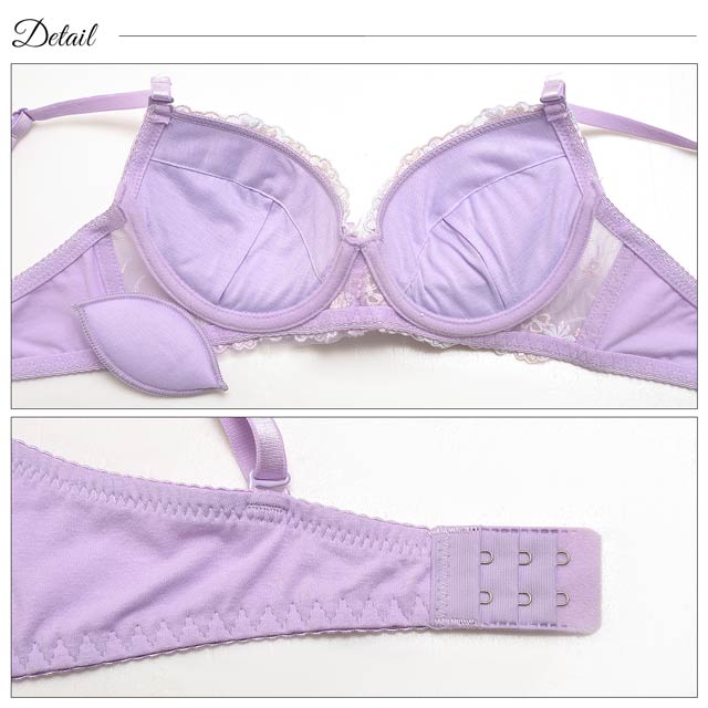 ラグジュアリーフラワーレース育乳脇高ブラジャー&バック透けフルバックショーツ[プチプラ]
