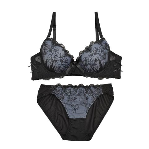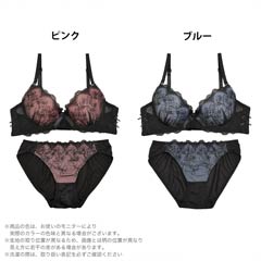 ラグジュアリーフラワーレース育乳脇高ブラジャー&バック透けフルバックショーツ[プチプラ]