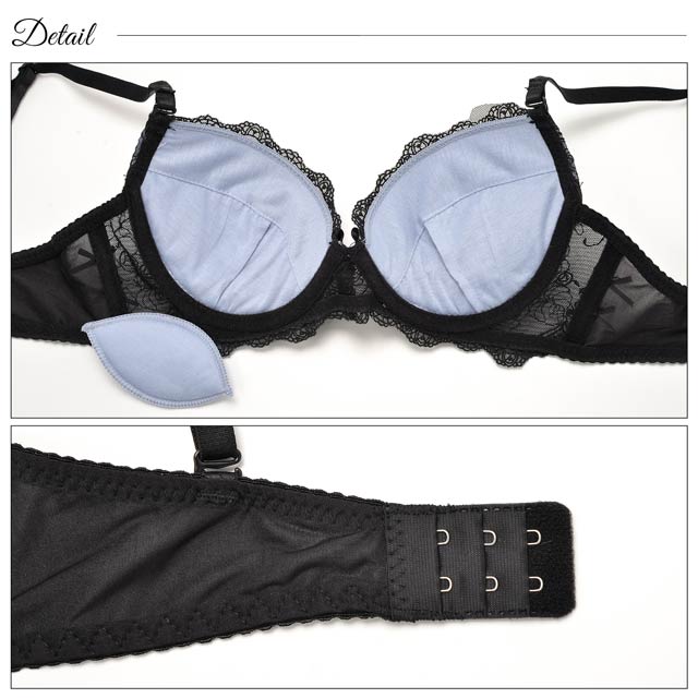 オールレースカットストリング育乳脇高ブラジャー&バック透けフルバックショーツ