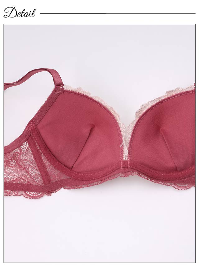オリエンタルスカラップレース育乳脇高ブラジャー&バック透けフルバックショーツ