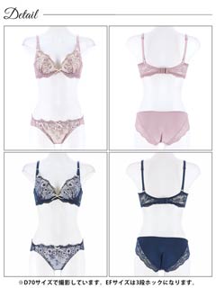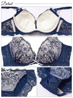 【EFサイズ】ダスティジュエルフラワー育乳脇高ブラジャー&フルバックショーツ[大人気]
