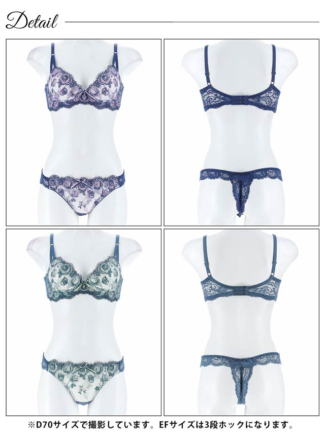 【かとゆり着用】【EFサイズ】グロリアスローズガーデン育乳脇高ブラジャー&バック透けTバックショーツ[大人気]