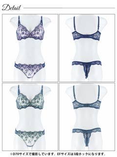 【三上悠亜着用】【EFサイズ】グロッシーチュールエンブロイダリーブラジャー&サイド紐バック透けフルバックショーツ
