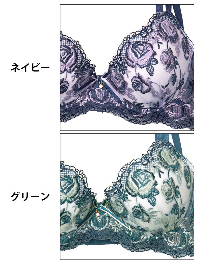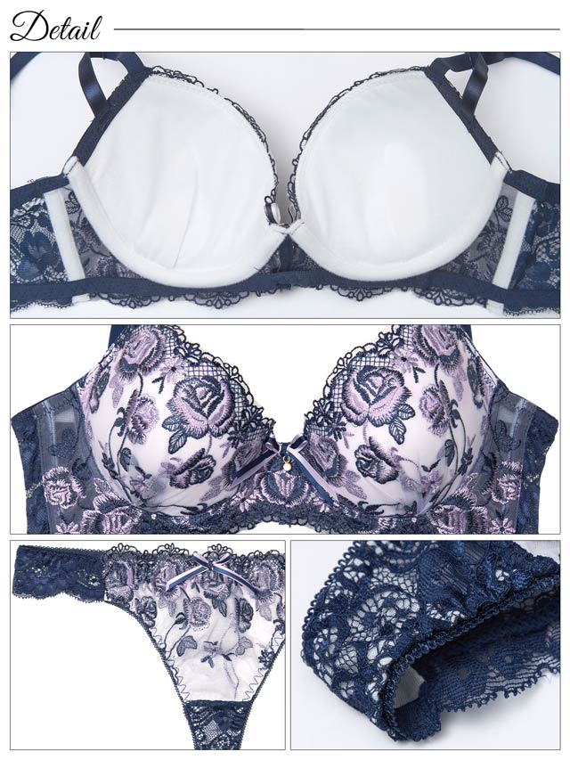 ダスティブルームエンブロイダリー育乳脇高ブラジャー&バック透けフルバックショーツ