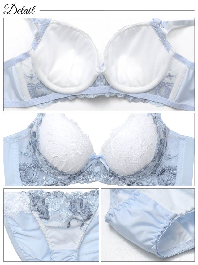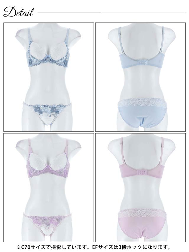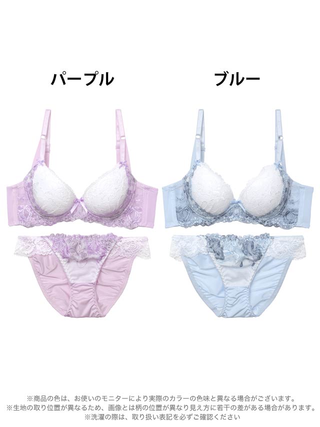 【EFサイズ】フェミニンレースブルーミング育乳脇高ブラジャー&フルバックショーツ[大人気]