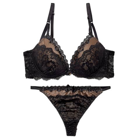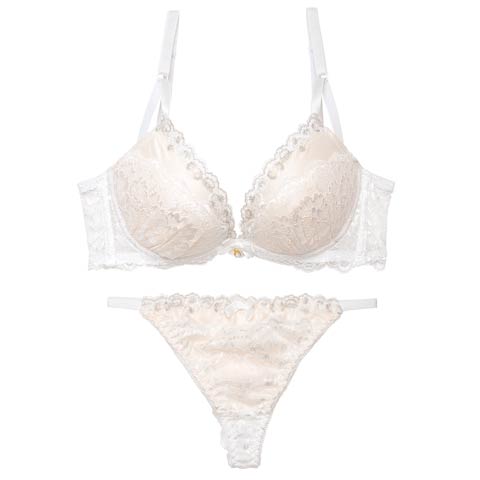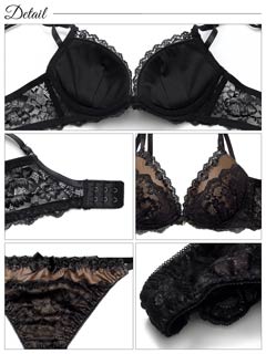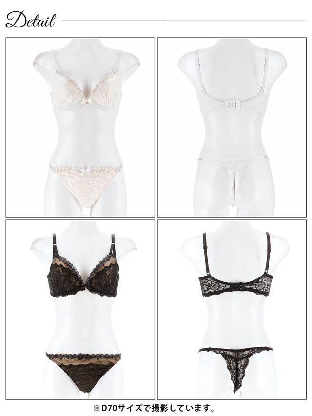 オールレースカットストリング育乳脇高ブラジャー&バック透けフルバックショーツ