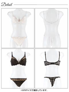 フロレゾンローズレース育乳脇高ブラジャー&サイド紐バック透けフルバックショーツ
