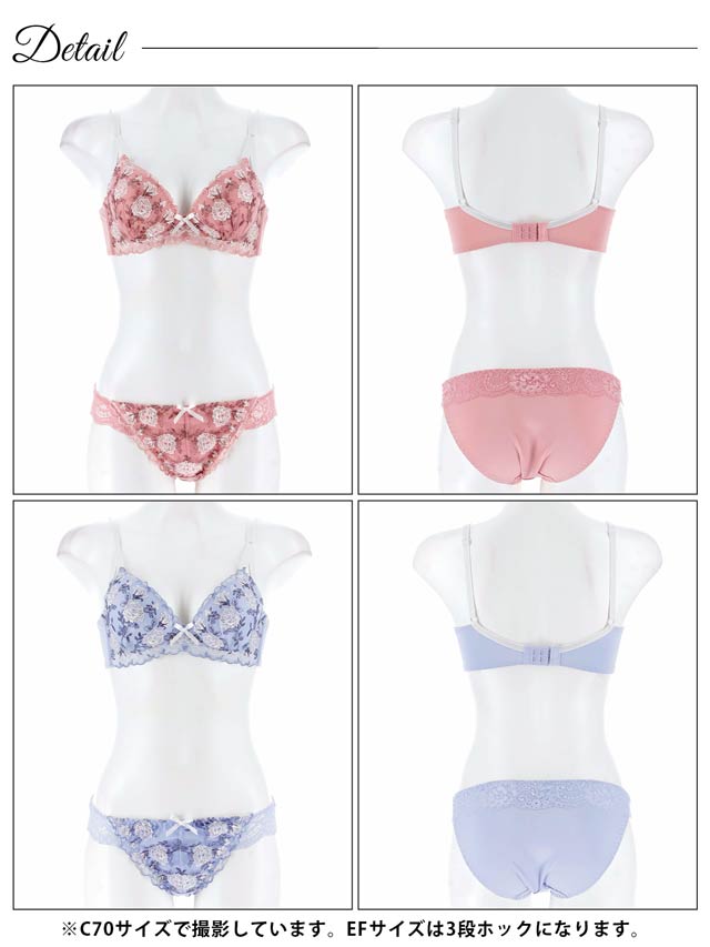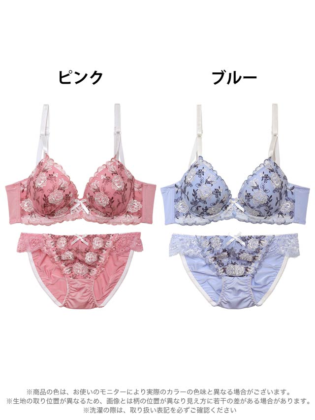 【EFサイズ】ドルチェローズエンブロイダリー育乳脇高ブラジャー&フルバックショーツ[大人気][週替]