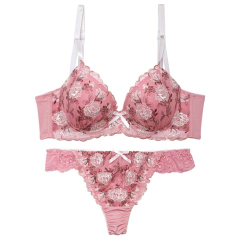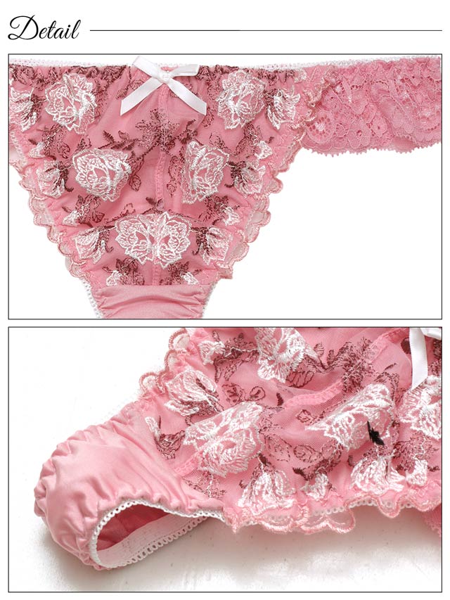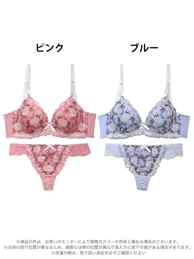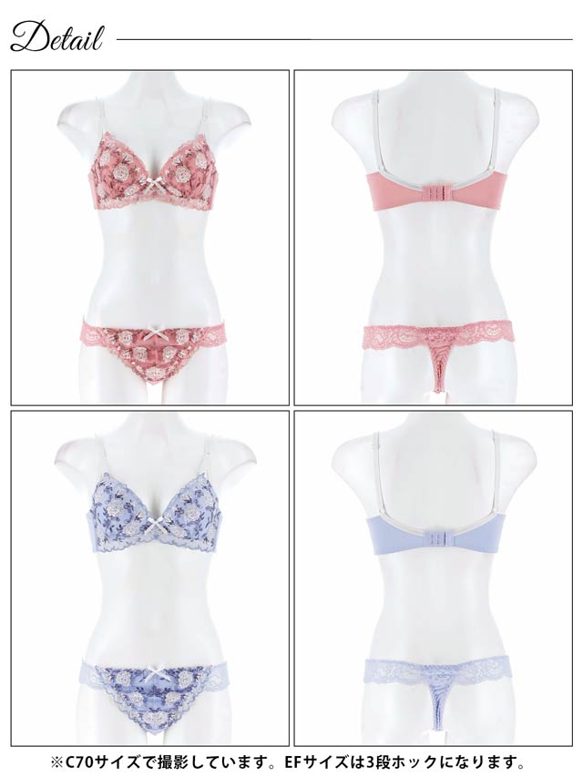 【EFサイズ】ドルチェローズエンブロイダリー育乳脇高ブラジャー&Tバックショーツ[大人気]