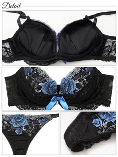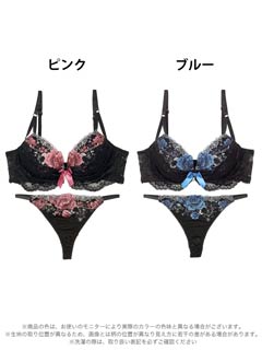エレガンスフラワー刺繍ブラジャー&Tバックショーツ[1250DRW]