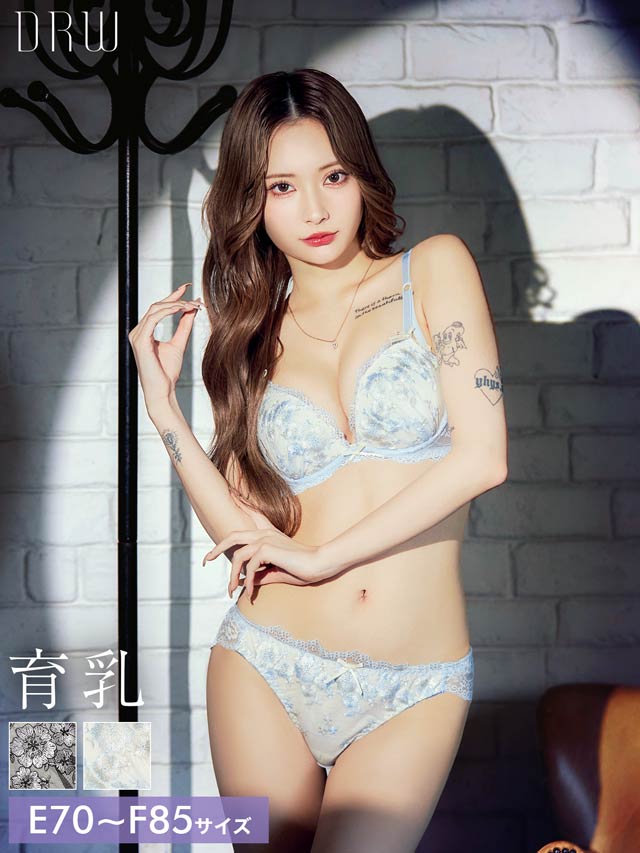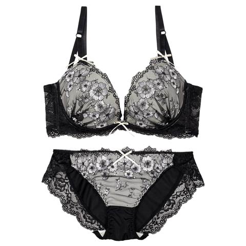 ルミナスフラワーレースアップ育乳脇高ブラジャー&バック透けフルバックショーツ[激売れ]