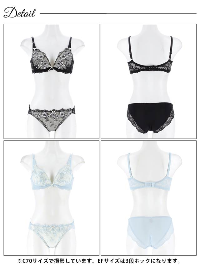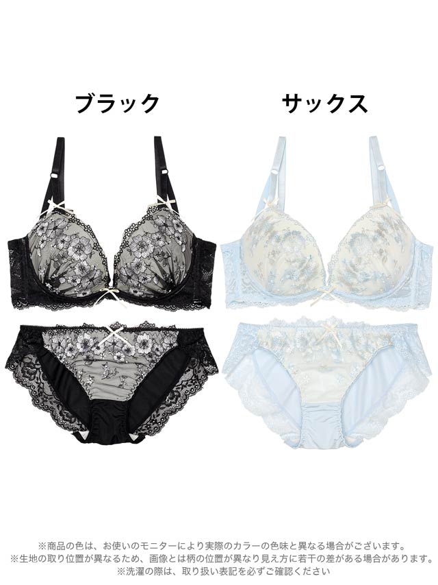 【EFサイズ】ダスティジュエルフラワー育乳脇高ブラジャー&フルバックショーツ[大人気]