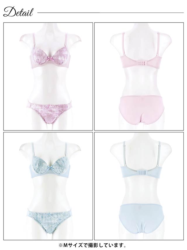 ダスティブルームエンブロイダリー育乳脇高ブラジャー&バック透けフルバックショーツ