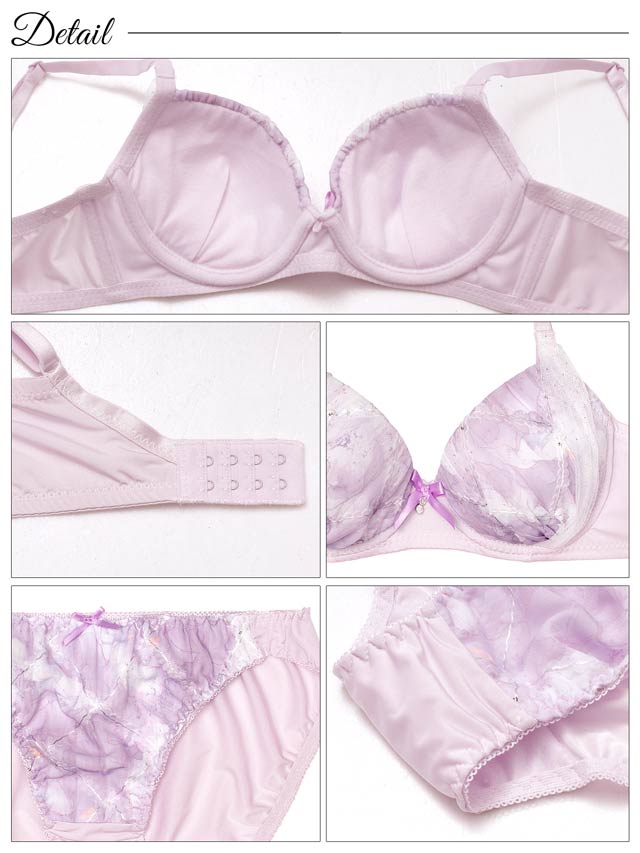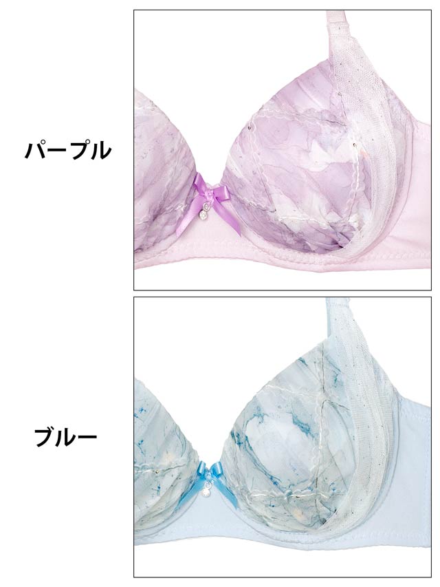 【ノンワイヤー】ガーリーメロウマーブル育乳脇高ブラジャー&フルバックショーツ[激売れ]