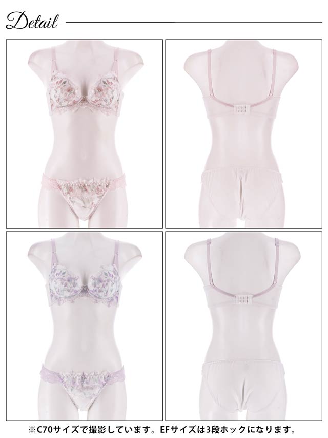 【EFサイズ】クラシックピュアブルーム育乳脇高ブラジャー&フルバックショーツ[大人気]