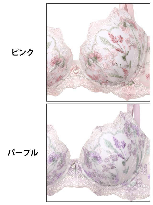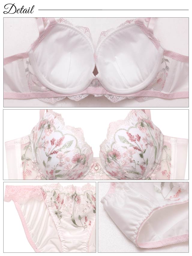 ダスティブルームエンブロイダリー育乳脇高ブラジャー&バック透けフルバックショーツ