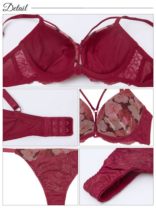 オールレースカットストリング育乳脇高ブラジャー&バック透けフルバックショーツ