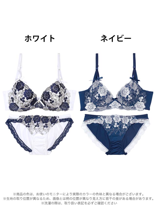 【EFサイズ】フェミニンレースブルーミング育乳脇高ブラジャー&フルバックショーツ[大人気]