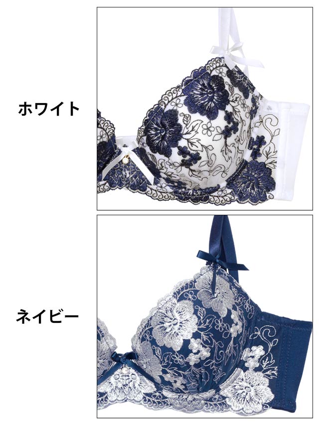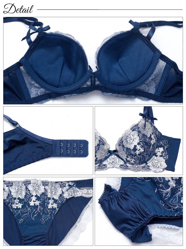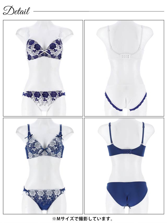 ダスティブルームエンブロイダリー育乳脇高ブラジャー&バック透けフルバックショーツ