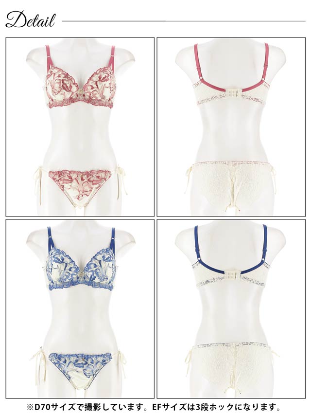 10/18再販!【EFサイズ】アロマティックフラワー育乳脇高ブラジャー&サイド紐バック透けフルバックショーツ[大人気]
