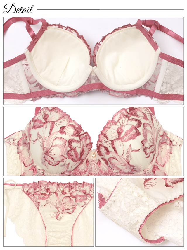ダスティブルームエンブロイダリー育乳脇高ブラジャー&バック透けフルバックショーツ