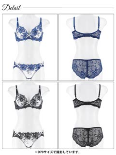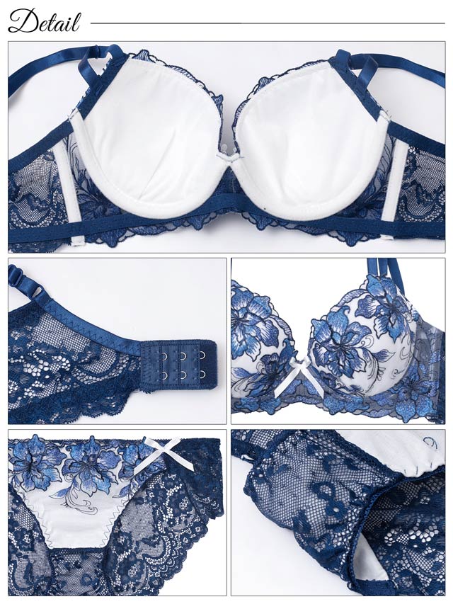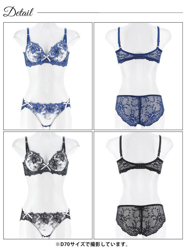 ダスティブルームエンブロイダリー育乳脇高ブラジャー&バック透けフルバックショーツ
