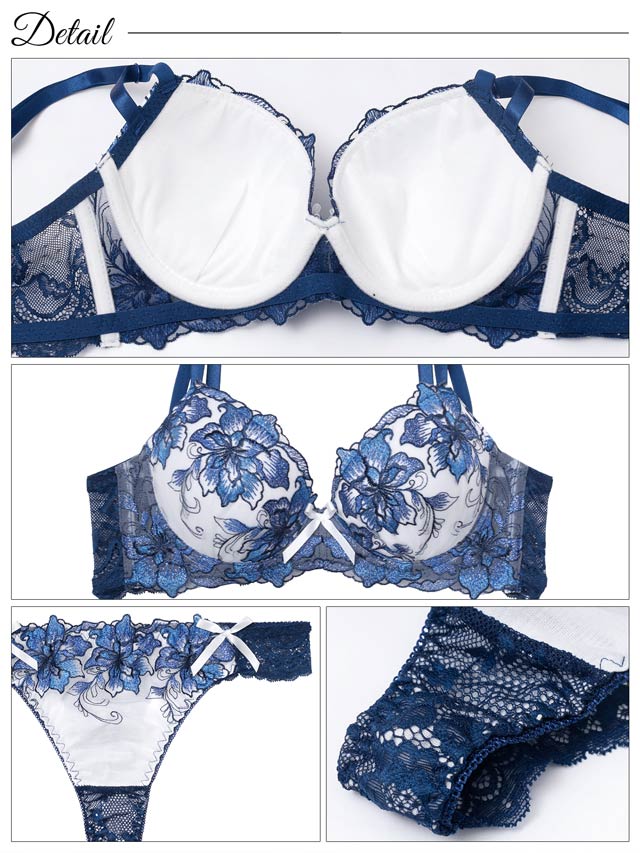 ダスティブルームエンブロイダリー育乳脇高ブラジャー&バック透けフルバックショーツ