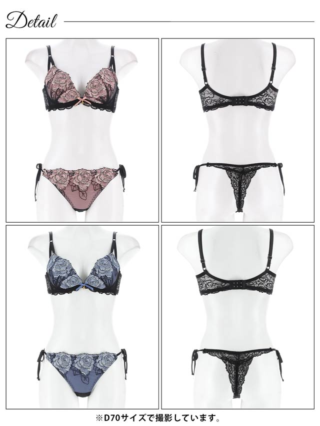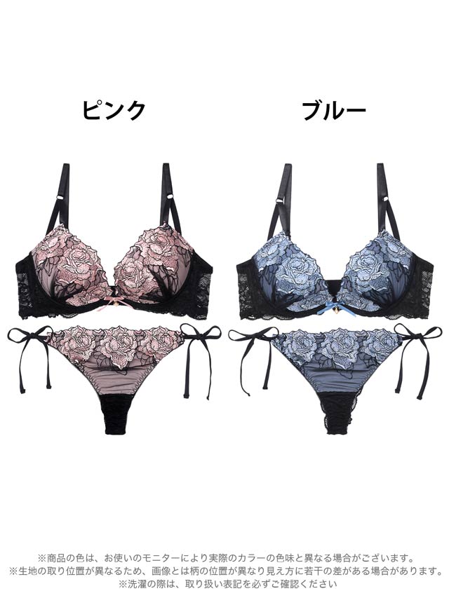 エレガンスフラワー刺繍ブラジャー&Tバックショーツ[1250DRW]