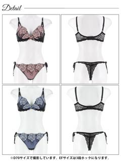 【三上悠亜着用】【EFサイズ】セレーナローズエンブロイダリー育乳脇高ブラジャー&サイド紐バック透けTバックショーツ[大人気]