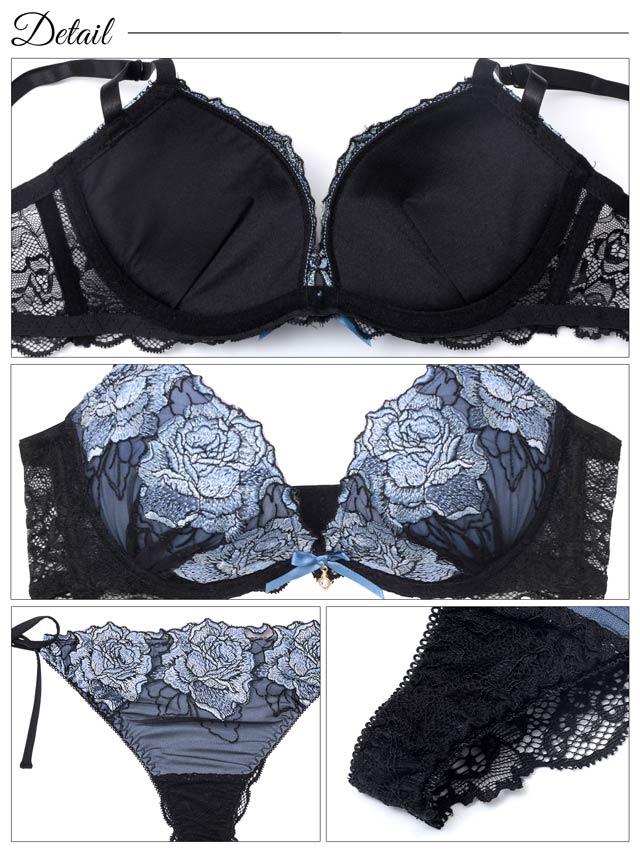 エレガンスフラワー刺繍ブラジャー&Tバックショーツ[1250DRW]